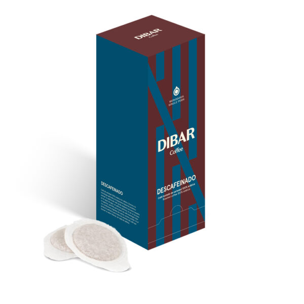 Een Dibar koffie van 100% Arabica bonen maar dan cafeïnevrij (Decaf). Dibar haalt met behulp van de modernste technologie, op geheel natuurlijke wijze, de cafeïne uit de groene, ongebrande koffiebonen. Niet met behulp van chemicaliën, maar met stoom. Hierdoor behoudt de boon haar oorspronkelijke body en aroma’s. Na het branden heeft deze cafeïnevrije koffie dus nog altijd het typerende karakter van een 100% arabica. Vol en zacht van smaak, maar zonder cafeïne. De koffie wordt direct na het branden en malen verwerkt tot serving (espresso pad).