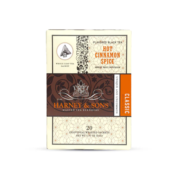Harney & Sons’ meest populaire gearomatiseerde theemelange. Een mengeling van zwarte thee, sinaasappel, kruidnagel en natuurlijk 3 soorten kaneel.