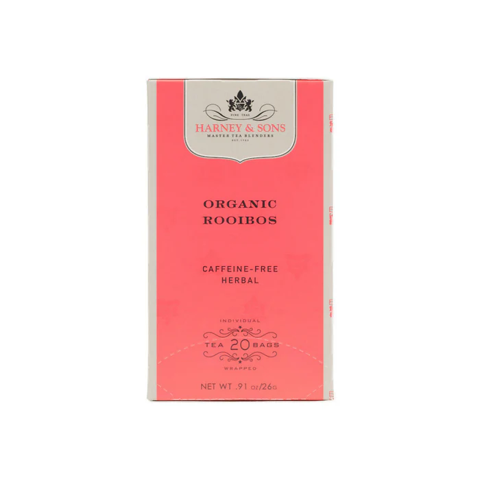 Organic Rooibos is gemaakt van redbush kruiden uit Zuid-Afrika. Geniet van deze heerlijke cafeïne-vrije kruiden thee van Harney & Sons, ook voor kinderen